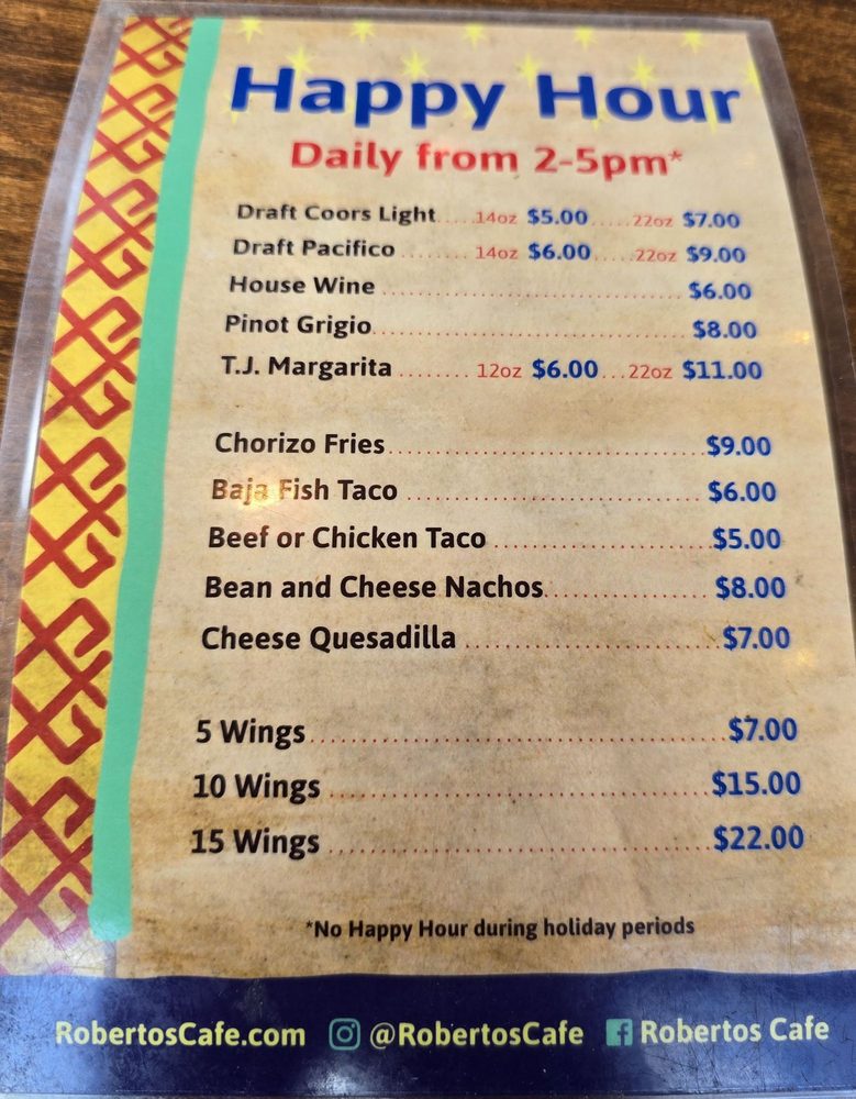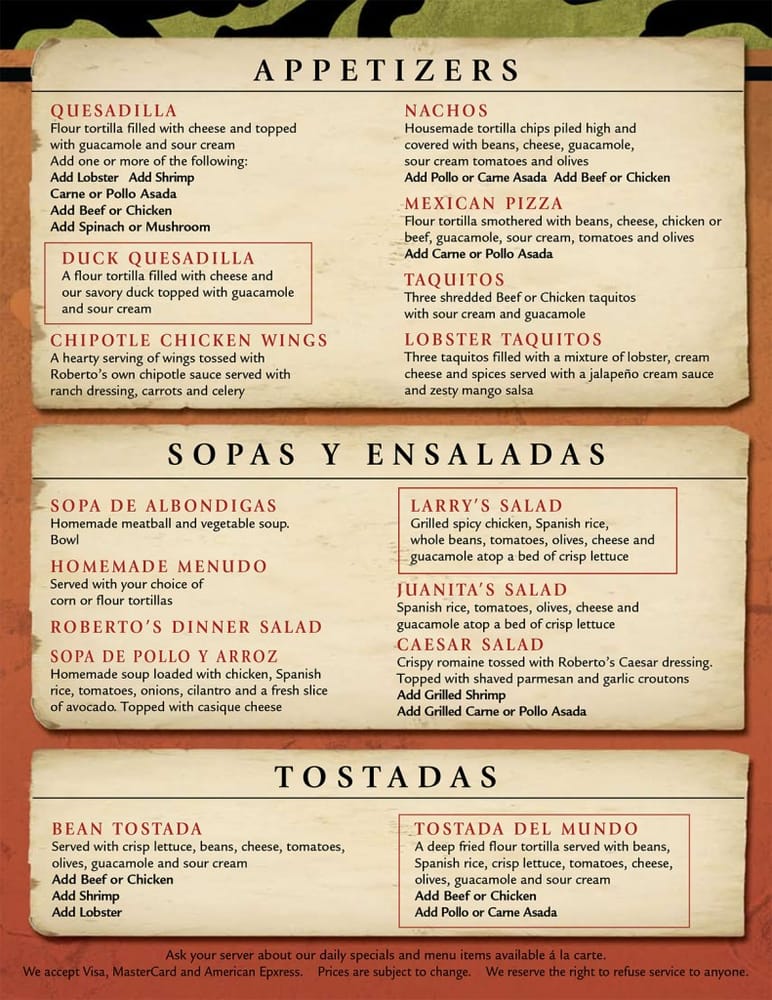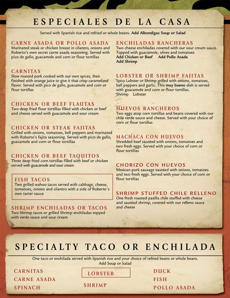 Roberto’s Cafe Menu (2025 Update)